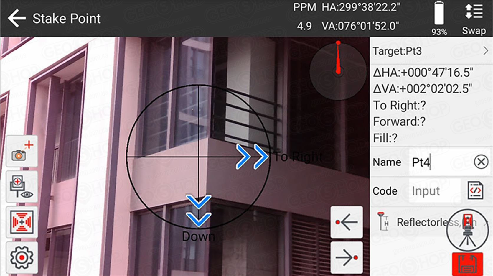 Вбудована камера наведення дає змогу швидко зафіксувати призму навіть у складних умовах — при недостатньому освітленні, на фоні металевих конструкцій або серед великої кількості об’єктів. Це особливо актуально на щільних міських забудовах та промислових майданчиках.